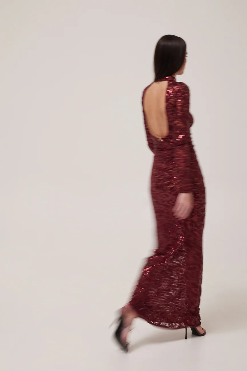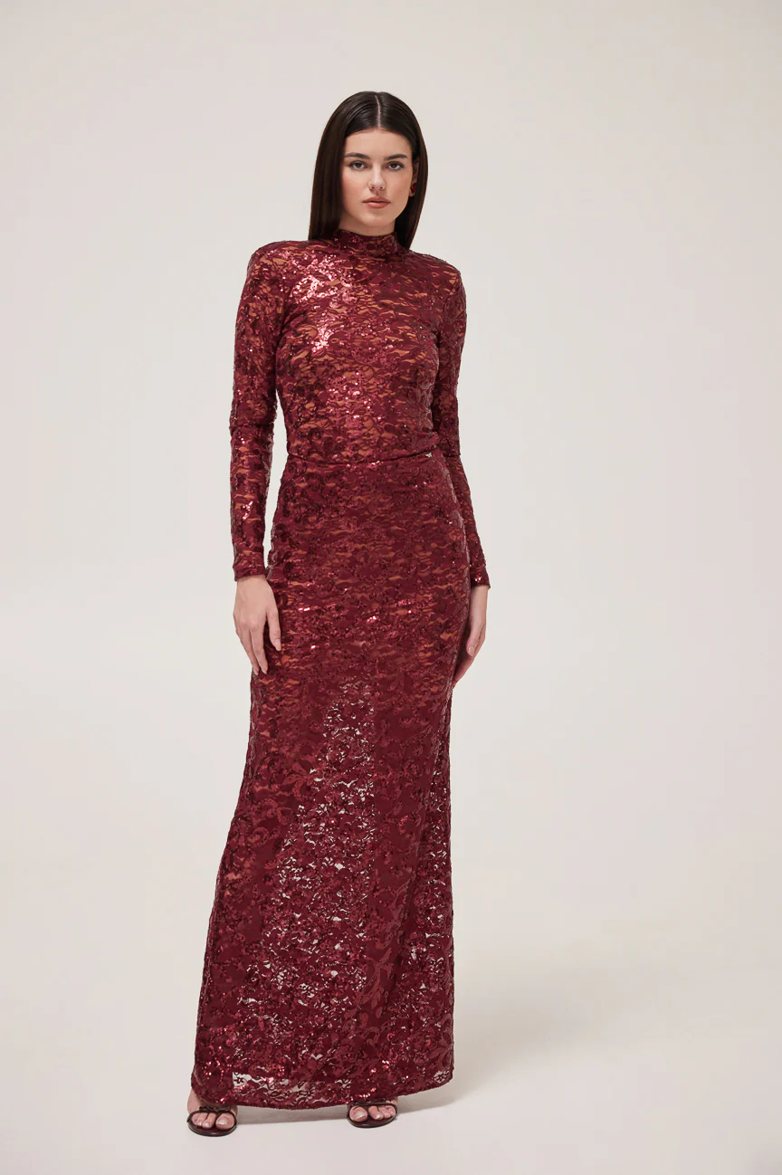 Κλείσιμο με κουμπί στη λαιμόκοψη.Φούστα μάξι